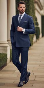 No wardrobe of stylish formal outfits for corporate men 2026 is complete without a navy suit. It’s the most versatile formal piece a man can own—more interesting than black, more flexible than gray.