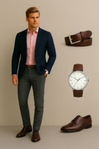 Brown has made a significant comeback in men corporate fashion trends 2026. A structured dark brown blazer paired with cream or off-white chinos and a white or pale pink formal shirt creates a sophisticated corporate look with genuine personality.