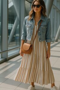 Dresses aren’t just for fancy occasions. A casual midi dress with sneakers creates an easy, feminine look that’s still comfortable.