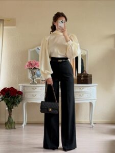 Not every date night calls for a dress. High-waisted tailored trousers paired with a silky blouse create a sophisticated, stylish date night look 2026 that works particularly well for more formal dinner dates or women who simply feel more confident in trousers than dresses.