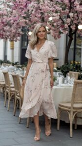 The wrap dress earns its place among the best low budget dinner date outfits because it’s adjustable, universally flattering, and inherently romantic. The crossed bodice creates a natural V-neck that’s feminine without being overly revealing, and the tied waist defines the figure elegantly.