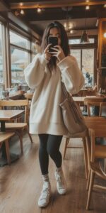 1. Black Leggings with Oversized Tunic