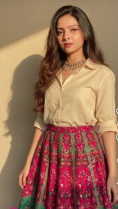Investment: Embellished crop top (₹800-₹1200) + lehenga skirt (₹1200-₹1800).